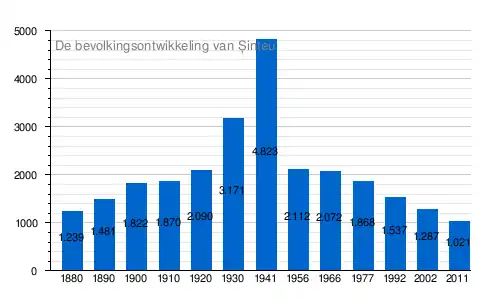 In 2011 telde Șinteu 1.021 inwoners, waarvan 510 mannen en 511 vrouwen.[1] De gemeente bestaat nagenoeg uitsluitend uit etnische Slowaken (984 personen, oftewel 96,4%). Verder werden er 11 etnische Roemenen en 6 etnische Hongaren geregistreerd.