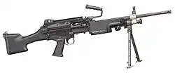 FN MinimiVlag van België BelgiëLicht machinegeweer5,56×45mm NAVOBandgevoed licht machinegeweer dat in gebruik is binnen de infanteriebataljons. Persoonlijk wapen, gebruikelijk twee Minimi's per groep.
