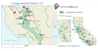 Het 15e congresdistrict van Californië, vaak afgekort als CA-15, is een kiesdistrict voor het Amerikaanse Huis van Afgevaardigden. Het district heeft tegenwoordig een lange, smalle vorm en ligt ten westen van de grote stad San Jose. Het omvat een deel van Santa Clara County en wordt geflankeerd door het 14e district in het westen en het 16e in het oosten. Het 15e district is nagenoeg volledig verstedelijkt.[1] Belangrijke plaatsen zijn Campbell, Cupertino, Gilroy, Los Gatos, Milpitas en Santa Clara. Het district omvat delen van het beroemde Silicon Valley. Zo is het grote elektronicabedrijf Apple Inc. in Cupertino gevestigd.