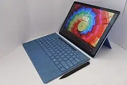 - Convertibles die met laptophardware zijn uitgevoerd en daarom gebruikt kunnen worden met een normaal desktopbesturingssysteem als pc-vervanging (bijv. MS Surface 3, HP Pavilion x360, Acer Iconia)