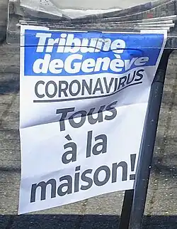 - ↑ La Suisse en état de "situation extraordinaire" jusqu'au 19 avril, RTS, 16 maart 2020. Gearchiveerd op 7 augustus 2020.