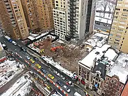Het gebouw dat eerder op deze plaats stond was een 20 verdiepingen tellend gebouw, gebouwd in 1954. Het bevatte 124 appartementen, en was in 2005 gekocht door Vornado voor $131.500.000.[3][4] Na de aankoop ging Vornado een juridische strijd met huurders betreffende hun uitzetting.[4] De rechter koos de kant van Vornado in 2009, en er kwam een overeenkomst met huurders in 2010: het betalen van tussen de $1.300.000 en $1.560.000 aan degenen die nog huurders van het gebouw waren.[5]