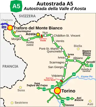 | Autostrada della Valle d'Aosta (FR) Autoroute de la Vallée d'Aoste Torino-Monte Bianco | |||