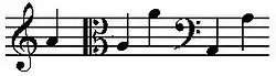 De A, ook la genoemd, is een van de stamtonen die een hele toonafstand hoger ligt dan de G (en een hele toon lager dan de B. In de reine stemming heeft het interval G – A de grootte 9:10 en het interval A – B de grootte 8:9.