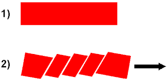 Door een extern aangebrachte spanning, door kracht, glijden delen van de kristalstructuur langs elkaar. Daarmee verandert de geometrie van het materiaal. Afhankelijk van het type kristalrooster bevinden zich verschillende kristalvlakken in het materiaal, waarlangs het voor de atomen energetisch gunstig is om langs elkaar te glijden. De afbeelding hiernaast toont een schematische weergave van wat er bij afschuiving gebeurt. Hoewel het afgebeelde materiaal van vorm verandert, de staaf wordt langer en dunner, blijft de structuur van het materiaal min of meer hetzelfde.