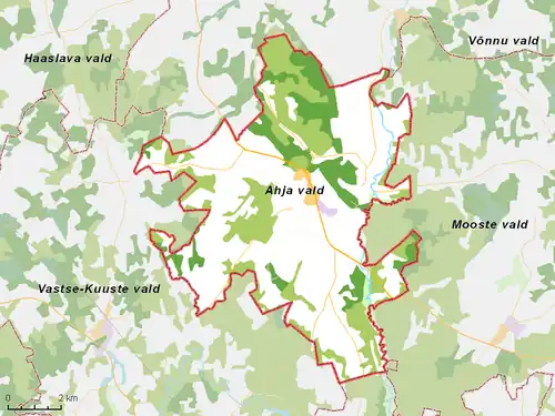 De landgemeente telde negen nederzettingen, waarvan alleen de hoofdplaats Ahja de status van alevik (vlek) heeft.
