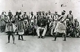 Groepsportret van de zogenaamde 'Amazones uit Dahomey' tijdens hun verblijf in Parijs