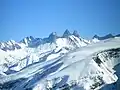 De drie toppen van de Aiguilles d'Arves zitten verwerkt in het logo van het bekende skigebied Les Sybelles. Vanaf de skipistes zijn de drie toppen goed te zien.