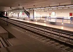 Kunstwerk in het station.- Splitsing van de sporen in het station.
