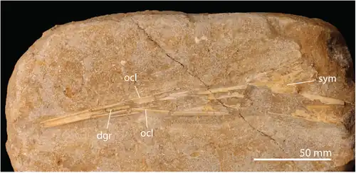 Het holotype, FSAC-OB 2, is gevonden in de middelste Couche III, het onderste fosfaatlagencomplex bij Sidi Daoui dat dateert uit het late Maastrichtien. Het bestaat uit een gedeeltelijk skelet zonder schedel. Het omvat een opperarmbeen, een borstbeen, een halve schoudergordel en een dijbeen. Het betreft een volwassen individu. Toegewezen zijn de specimina FSAC-OB 217: een vierde middenhandsbeen; FSAC-OB 156: een stel onderkaken; en FSAC-OB 4: een brok steen omvattende een vleugel en verder elementen van vleugels, schoudergordels en synsacra, dus bij elkaar meerdere individuen. Ook de toegewezen specimina vertegenwoordigen volwassen individuen.