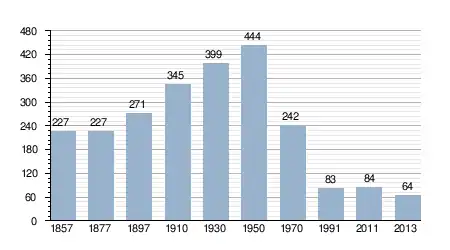 - Bron: INE, 1857-2011: volkstellingen