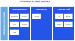 De twee administraties beschikken elk over een Centrale Component in de hoofdzetel in Brussel en een aantal buitendiensten verdeeld over het hele land.