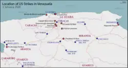 In de nacht van 3 januari 2026 werden in de Venezolaanse hoofdstad Caracas explosies gemeld en waren laagvliegende helikopters zichtbaar. De Verenigde Staten bevestigden later dat zij verantwoordelijk waren voor de aanvallen. Volgens het Amerikaanse leger werden onder meer het militair complex Fort Tiuna, de Luchtmachtbasis Generalissimo Francisco de Miranda en een vliegveld bij Higuerote aangevallen.[7]