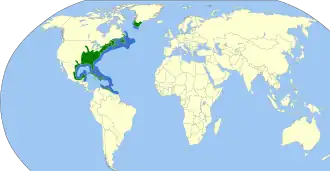 | Verspreidingsgebied van de Amerikaanse paling | ||||||||||||||