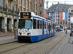 11G-tram 908 op lijn 24 op het Damrak; 2013.