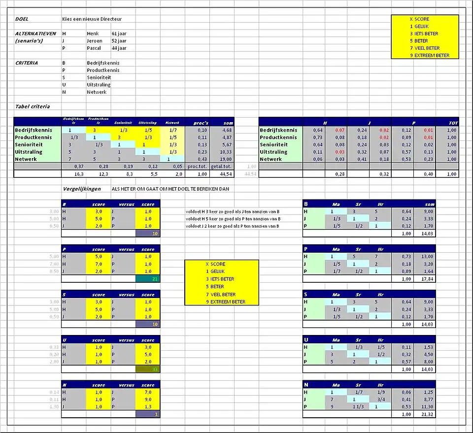 - Stap 2: alternatieven met de criteria vergelijken en in een rangorde plaatsen;