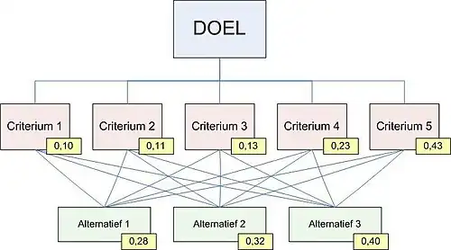 - Criteria - waaraan moet de te maken keuze ten minste voldoen om het doel te bereiken