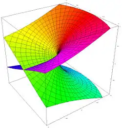 De vierkantswortel kan ook gedefinieerd worden op een riemann-oppervlak dat bestaat uit twee exemplaren van het complexe vlak, die op een geschikte manier op elkaar worden aangesloten. Na een omwenteling om het punt 0 loopt de functie door op het tweede exemplaar, en na nog een omwenteling sluit dit weer aan op het eerste exemplaar. Zo wordt meerwaardigheid van de vierkantswortel voorkomen. Het illustreert tevens de potentiële meerwaardigheid van de vierkantswortel op het complexe vlak.