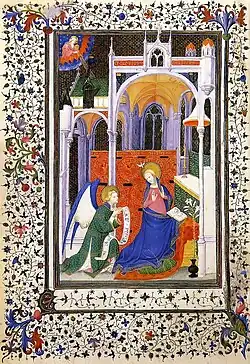 - ↑ De Gebroeders Van Limburg in de Très Riches Heures du duc de Berry, Meester van de Harvard Hannibal, getijdenboek Ms. W.287, The Walters Art Gallery, Baltimore, Jacqemart de Hesdin in de Petites heures du Duc de Berry en de Bedford-meester in de De Lévis-getijden (Beinecke Library, New Haven, Connecticut, Ms. 400.