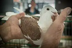 De volledige duif en zeven tot twaalf slagpennen zijn wit. Enkel de vleugelschilden, ovaal gevormd, zijn gekleurd. Gekleurde duimveren genieten de voorkeur. Gekleurde broek achter de loopbenen is toegestaan. Een of meerdere onzichtbare schakelpennen bij een gesloten vleugel wordt aanvaard.