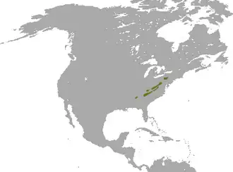 | Verspreidingsgebied van de appalachenkatoenstaart | ||||||||||||