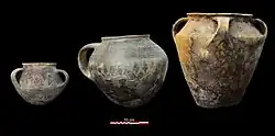 Aardewerk wordt in de graven van deze hoofdmannen nooit gevonden. Het heeft over het algemeen een biconische vorm, vaak met handvatten in een variabel aantal (1 tot 6). Het kan gedecoreerd zijn met punthaken, gearceerde driehoeken en groeven.