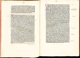 | Nicolaus de Lyra. | Postilla super totam Bibliam. | Johannes Andreas, bisschop van Aleria | 1471-72 |