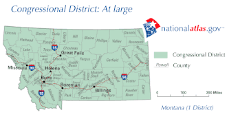Het congresdistrict ontstond toen Montana in 1889 een staat werd. Tot 1913 vaardigde de staat één afgevaardigde af. Van 1913 tot 1919 kozen de bewoners twee afgevaardigden vanuit het at-large district. In 1993 werd Montana onderverdeeld in twee congresdistricten, het 1e en 2e district. Na de volkstelling van 1990 werden die opgeheven in 1993. Door bevolkingstoename vastgesteld bij de volkstelling van 2020 krijgt Montana in 2023 opnieuw twee kiesdistricten en zal het at-large district opnieuw worden opgeheven.