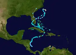 Een deel van de restanten van tropische depressie 8 vormden een storing boven het noordwesten van de Caraïbische Zee en het schiereiland Yucatán. Deze storing intensiveerde door een tropische onweersstoring in de buurt. Vervolgens werd de organisatie van de convectie gestimuleerd door een hogedrukgebied op grote hoogte, dat de uitstoot van de te vormen depressie stimuleerde. Op 29 september vormde zich ten oosten van Cozumel een lagedrukgebied, dat naar het noorden trok en een paar uur later promoveerde tot tropische depressie 10 op 270 km ten zuidzuidwesten van het uiterste westen van de Cubaanse provincie Pinar del Río. Tropische depressie 10 trok naar het noordnoordoosten. Aanvankelijk waren de omstandigheden gunstig voor verdere ontwikkeling, maar boven het zuiden van de Golf van Mexico ontstond een groot, niet-tropisch lagedrukgebied, dat tropische depressie 10 niet alleen in de verdere ontwikkeling zou onderdrukken, maar haar op 30 september zou opslokken, toen zij de Golf van Mexico binnentrok. Tropische depressie 10 bracht zeer veel regen boven het westen en midden van Cuba, de Florida Keys en Zuid-Florida, tot meer dan 300 mm in het Cubaanse Giron.
