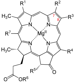 | Bchl g | –CH=CH2 | –CH3a | –C2H5 | –CH3 | –CO–O–CH3 | –Farnesyl | –H |
