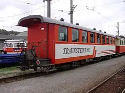 | Bij latere rijtuigen werd het balkon overdekt, en het hekje werd een echte deur. Er is nu niet veel gelijkenis meer met het balkon aan een huis. Dergelijke rijtuigen komen thans nog veel voor, vooral op langere trajecten. | ![]() | |