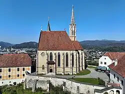 De kerk ligt op een bergkegel boven Judendorf-Straßengel.