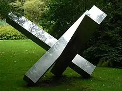 | Titel: Qurefe Aekayd Kunstenaar: Douglas Abdell Jaar: 1981 | Titel: Einheit aus drei gleichen Volumen Kunstenaar: Max Bill Jaar: 1979 | ||
