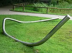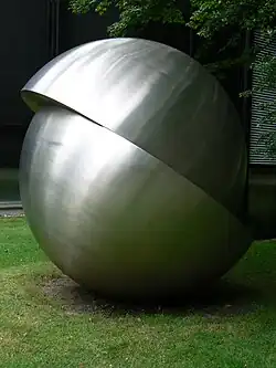 | Titel: Zwei gegeneinander verschobene Halbkugeln Kunstenaar: Ernst Hermanns Jaar: 1977 | Titel: Bottrop-Piece Kunstenaar: Donald Judd Jaar: 1977 | ||