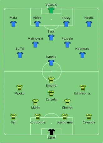 - ↑ De wedstrijd had normaal op 13 december 2017 gespeeld moeten worden, maar werd uitgesteld omdat het veld onbespeelbaar was.
