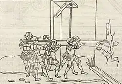 Hendrik van Cats ziet zijn vader Nicolaas vastgebonden aan een stormram en besluit kort daarna tot overgave van Schoonhoven. | ||||