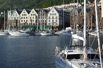 Bergen werd volgens de overlevering in 1070 gesticht door koning Olav Kyrre. Tot 1299 was het de hoofdstad van Noorwegen. Tegen het einde van de 13e eeuw kreeg het een prominente rol in het Hanzeverbond als Kontor. Handelaren van overzee kochten er voornamelijk stokvis.