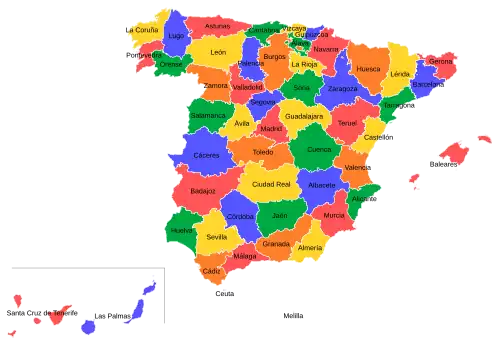 De gemeenschappen zijn verder onderverdeeld in provincies (provincias). De meeste provincies hebben dezelfde naam als hun hoofdstad. Slechts twee steden zijn hoofdstad van een autonome gemeenschap zonder hoofdstad te zijn van een provincie: Mérida (Extremadura) en Santiago de Compostella (Galicië).