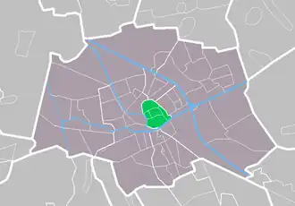 De begrenzing van de oude binnenstad heeft aan de west, de noord en de oost-zijde nog steeds grotendeels de oorspronkelijke vorm, hoewel de Aa, de westelijke begrenzing, oorspronkelijk iets meer naar het oosten langs de stad stroomde. Aan de zuidzijde is de eerste begrenzing, het Gedempte Zuiderdiep en het (gedempte) Kattendiep. Nu wordt de grens gevormd door het Verbindingskanaal dat loopt van de Zuiderhaven naar de Oosterhaven.