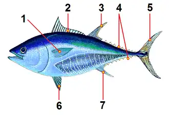 Vinnen van de blauwvintonijn.