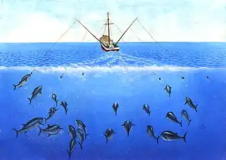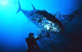 Als een tonijn in een net terechtkomt is het dier verloren; een tonijn moet voortdurend blijven zwemmen om aan voldoende zuurstof te komen.