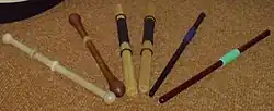 Er zijn veel verschillende tippers beschikbaar die ieder een andere klank kunnen geven. Er zijn tippers met ronde, dikke uiteinden en tippers die eigenlijk gewoon een rechte “stok” zijn. Ook worden er tegenwoordig hotrods en jazzrods gebruikt. Dit zijn tippers die bestaan uit meerdere dunne, bij elkaar gebonden stokjes. Hiermee kunnen andere effecten en klanken bereikt worden. Soms worden ook 'brushes' gebruikt, dit kunnen zelfs gewone haarborstels zijn, en hiermee kan heel zacht meegespeeld worden met muziek, indien dit gewenst is.