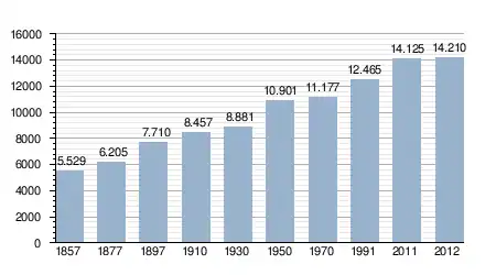 - Bron: INE; 1857-2011: volkstellingen