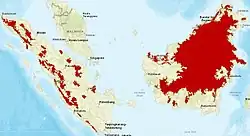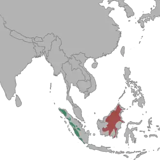 | Verspreidingsgebied ondersoorten Borneose nevelpanter groen: N. d. diardi, bruin: N. d. borneensis | ||||||||||||