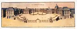 Versailles in de late jaren 70. De Noord- of edelenvleugel is gebouwd. Men bouwt aan de vleugels van de ministers.