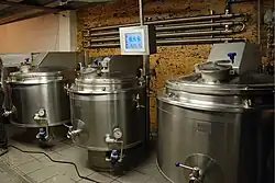 De maisch- en kookketels zijn oude soepketels van het Belgisch leger, omgebouwd voor het gebruik in de brouwerij.