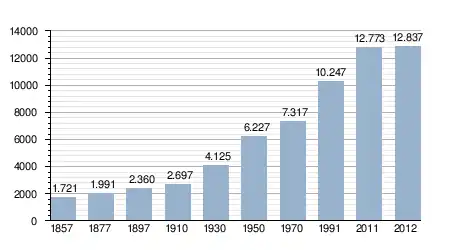 - Bron: INE; 1857-2011: volkstellingen