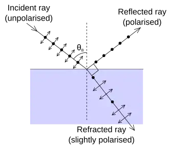 Als ongepolariseerd licht onder de brewsterhoek invalt op het grensvlak is het weerkaatste licht zuiver s-gepolariseerd en het gebroken licht vooral p-, maar ook nog deels s-gepolariseerd.