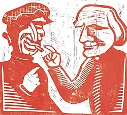 Dit is de verbeelding van de traditionele bazige vrouw, "uiteraard geschikt tot veelvuldig weduwschap".[2] |