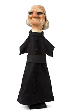 Deze pop, die gebaseerd is op de patroongeestelijke van de parochiegeestelijken, Jean – Baptiste Marie Vianney (Dardilly, 1786 – Ars, 1859), heeft een smal gezicht en lang, grijs haar. Na verloop van tijd wordt ook gewezen op de gelijkenissen met Hugo Verriest, priester, leerling en verdediger van Guido Gezelle. De pastoor heeft een eenvoudige en diepe beleving van het geloof. |